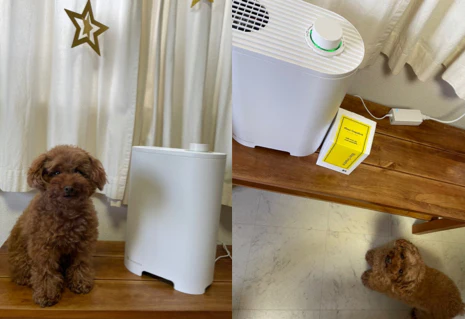 グレープフルーツの爽やかな香りが定期的にシュッと噴出。ワンと暮らしていると、知らぬ間に慣れてしまうその香り。ほのかに香るアロマがニオイを気にならなくしてくれます。